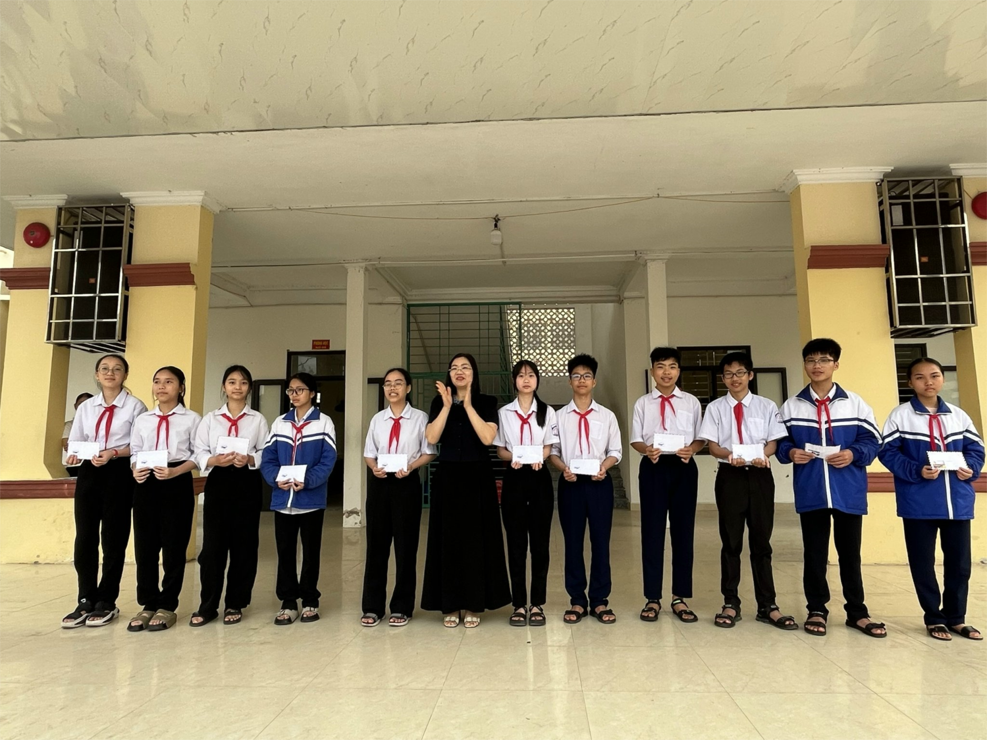Ảnh: Ban Giám hiệu Trường THCS Đoàn Lập trao thưởng, tuyên dương học sinh giỏi đạt thành tích cao trong kỳ thi học sinh giỏi cấp Thành phố Toán và KHTN bằng Tiếng Anh 2025-2026.